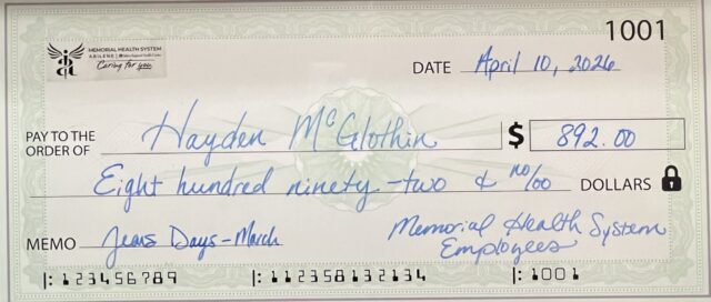 Employees of Memorial Health System (MHS) wore blue jeans at work, in March, for a “Jeans Day” fundraiser. Employees make a donation, of at least $2, and are allowed to wear blue jeans at work. A total donation of $892 was presented to Hayden McGlothin. Hayden, from Chapman, was diagnosed with leukemia last year, just […]