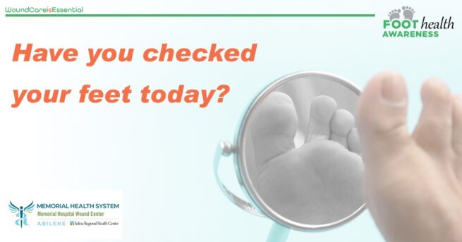 Put your best foot forward and check your feet each day. Routine foot checks, especially if you have diabetes or PAD, are encouraged to detect potential foot problems. For more information or to schedule an appointment, please call the Memorial Hospital Wound Center at 785-571-1070.